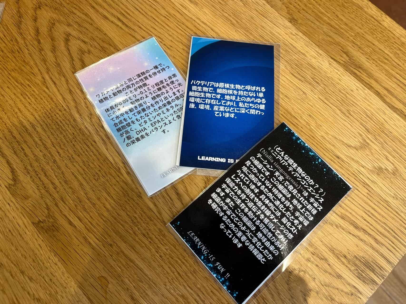生徒たちのカードには、それぞれの「気になったこと」や「学んだこと」がユニークな形で表現されており、教室には微生物への好奇心と探究心があふれていました。