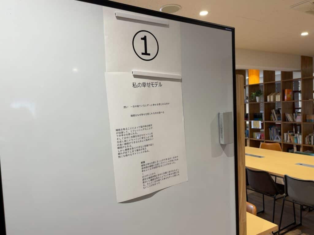 「人によって求める幸福の違いが生まれるのはなぜか?」「なぜ嬉しいときにも涙を流すのか?」など、生徒の興味関心から生まれた問いは多様で、個性あふれる探究内容が並びました。