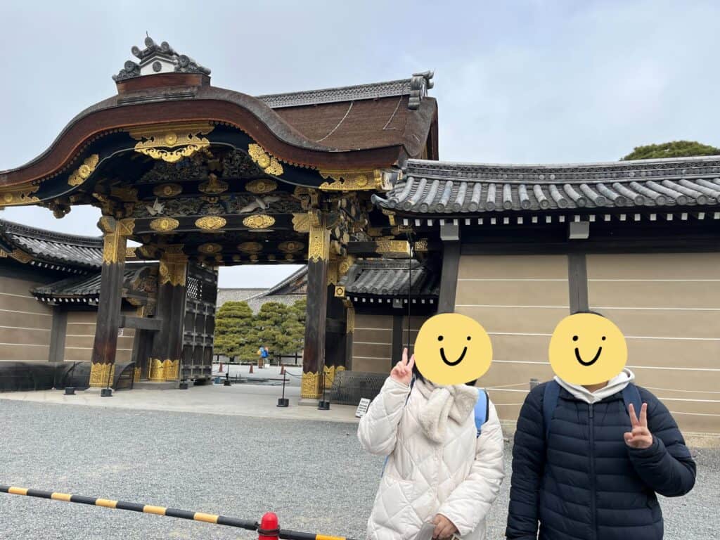当日は雪がちらつくほどの寒さでしたが、歴史ある二条城のきれいな庭園をのんびり散策し、思い思いに写真もたくさん撮影しました。