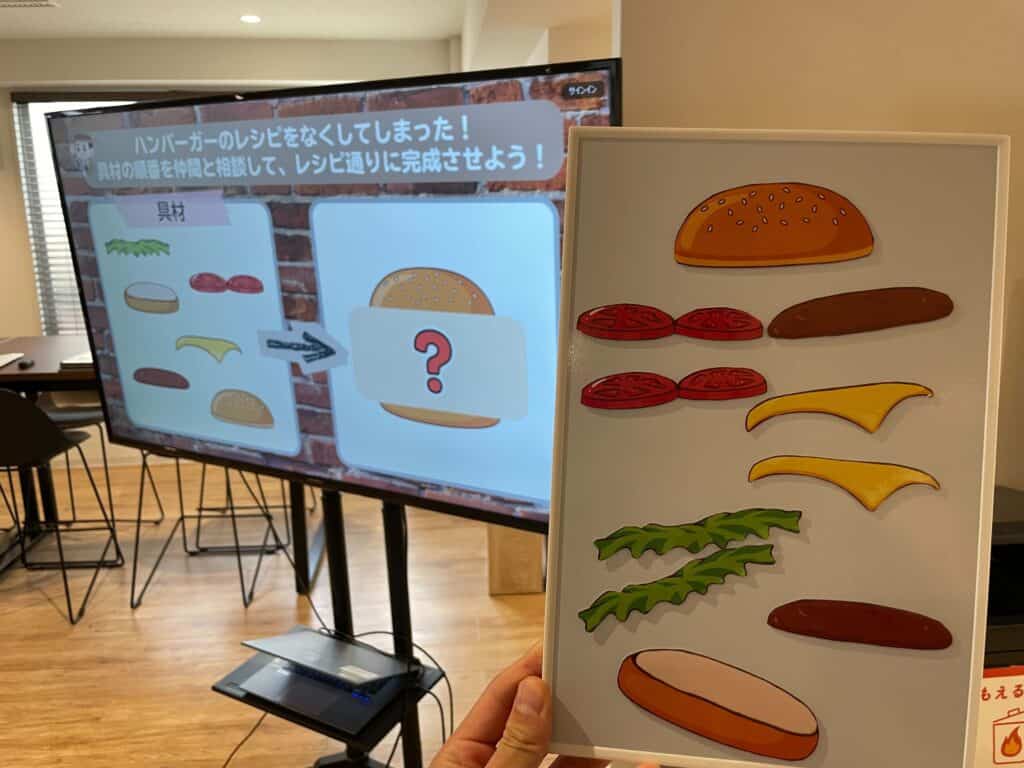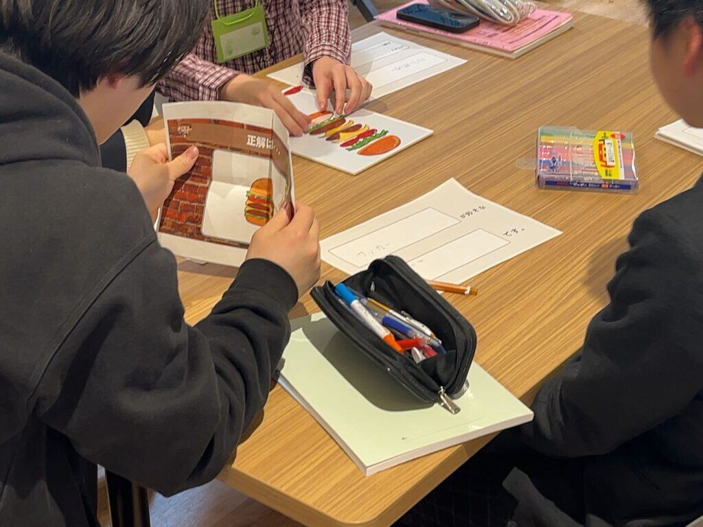 今回のメイン活動は、コミュニケーションを取りながらチームで“理想のハンバーガー”を完成させるワーク。