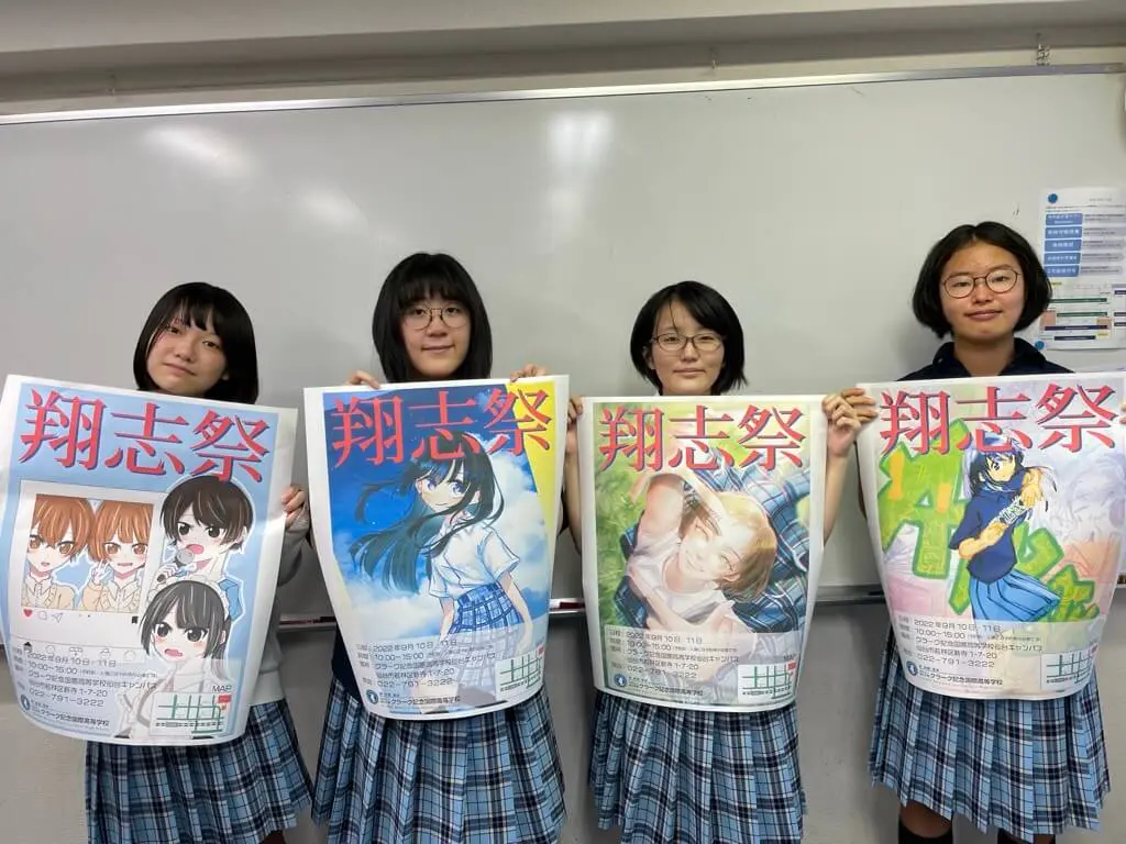 クリエイターコースでは、授業などでの個人作品を展示する予定です。今年も文化祭ポスターのデザインを各自で作成し、大判プリンターでA2サイズに出力しました。各自、構図などを考えてのとても良い作品に仕上がっています。文化祭当日は、キャンパス内に掲示していきますので、ぜひお気に入りの作品を見つけてみてください。