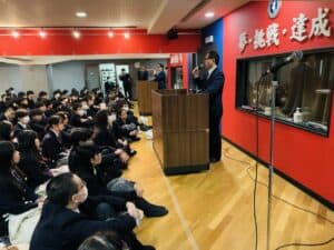 これまで1年生では半年間をかけて主体性・多様性・協働性について学んできました。協働性について実践した今回の授業では、チームメンバーにとある制限がかかった中でミッションをクリアしていくコミュニケーションゲームを行いました。制限では「文字を書いたらダメ」や「声を出すのはダメ」などさまざまなルールが決められており、お互いにどんな制限がかかっているかはわかりません。1年生同士創意工夫しながらミッションに挑戦していきました。