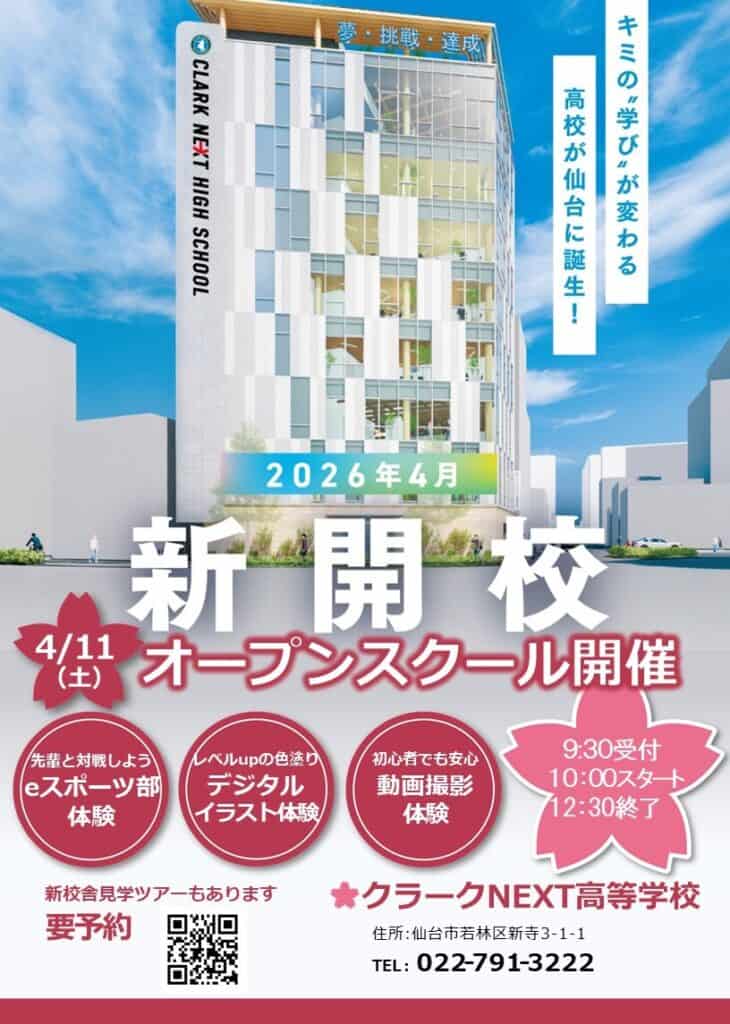 会場: クラークNEXT高等学校(仙台市若林区新寺3-1-1)