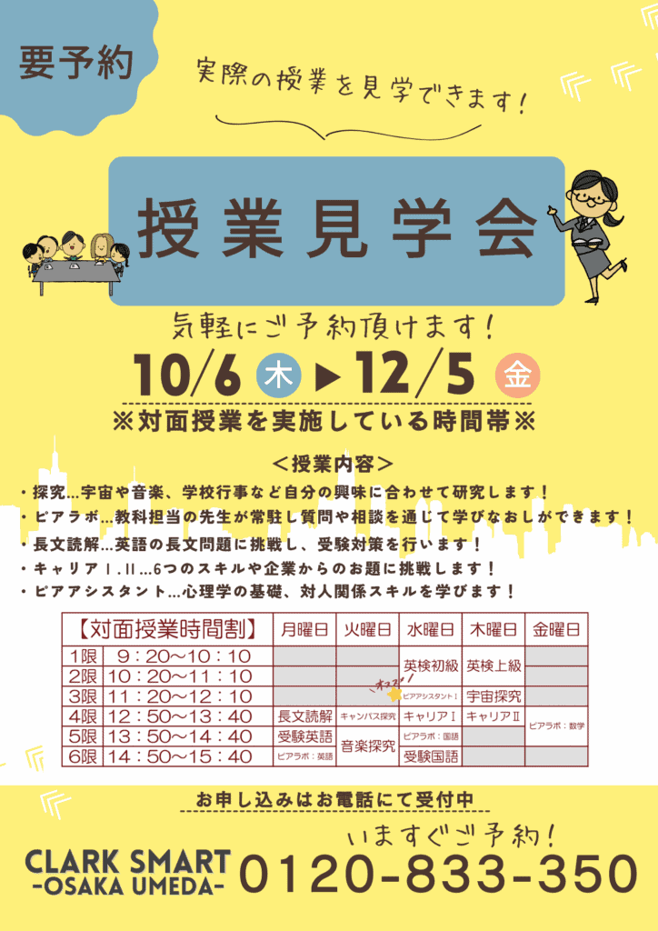 【CLARK SMART大阪梅田 授業見学会】対面授業を体験できます!お気軽にお申込みください!