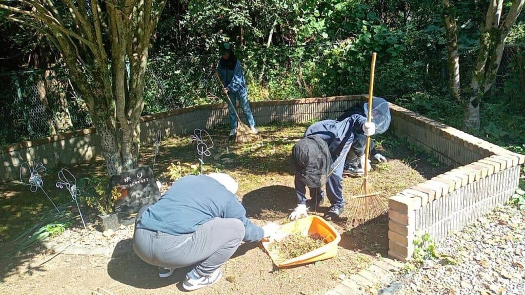 盲導犬と触れ合うだけでなく、盲導犬が走り回るドックランの整備を行いました。生い茂ってた草をきれいに刈り取りました。