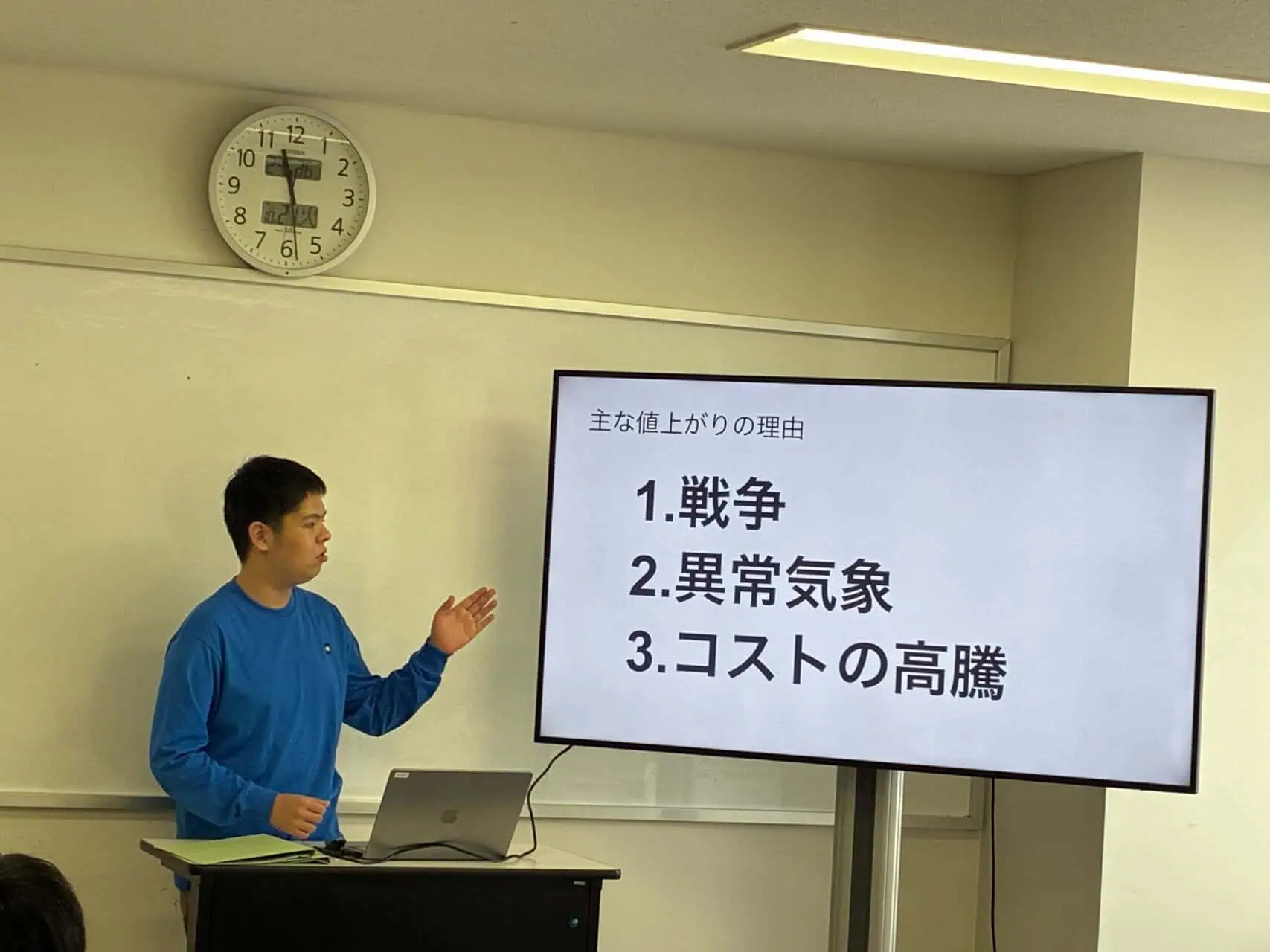 - “宇宙”を活用した新しい食糧問題をテーマに新しい解決策を考察しました。現在、食料品の高騰を含む、どうやったら宇宙に繋がる食の問題を解決できるか中間発表を行いました。