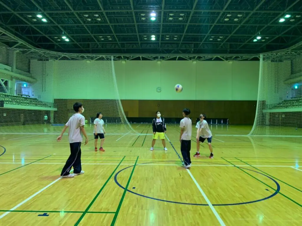 今回「スポーツ実践」の授業では、ソフトバレーボールを実施しました。ソフトバレーボールは、柔らかく軽くて弾力ぼあるボールを使用し、痛みもなく初心者でもボールが飛びやすい老若男女ができるニュースポーツです。最初は普段慣れない感覚でボールが飛びすぎてしまったり、意図しない方向へ飛んでいってしまったりしましたが、コミュニケーションをとりながらお互いにカバーしあっていました。