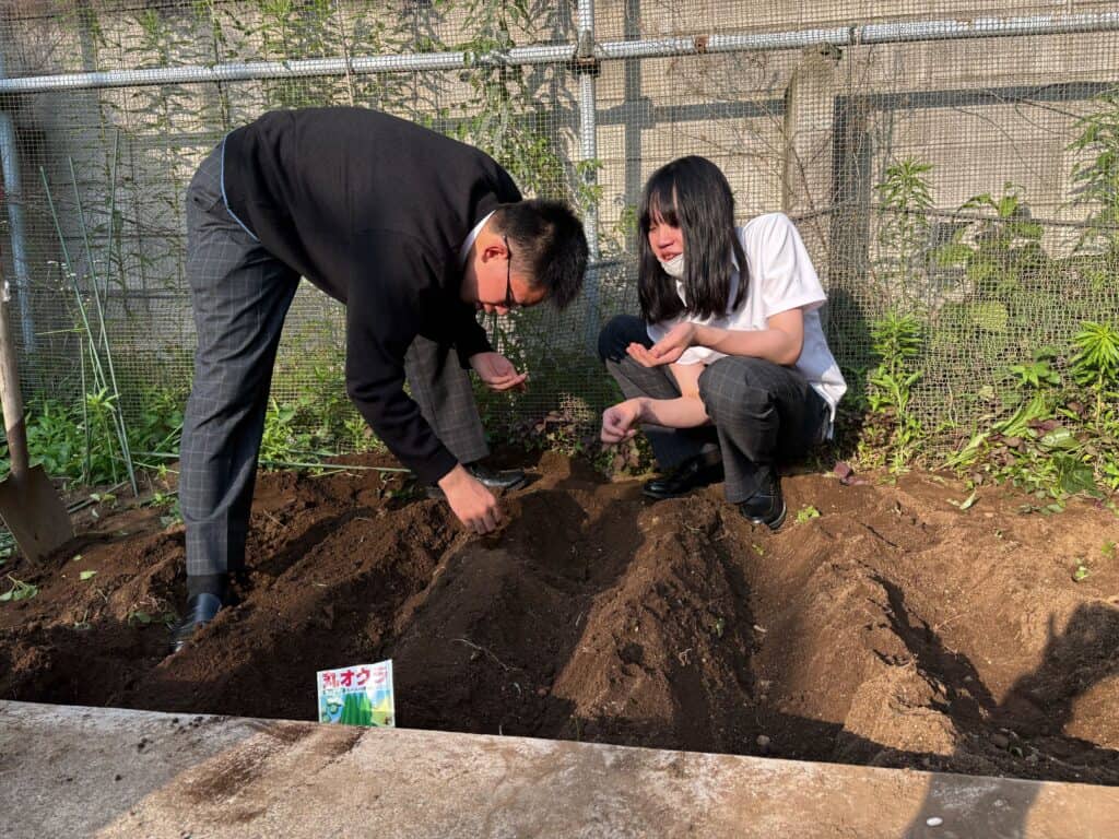 【部活動・園芸部】オクラとモロッコインゲン