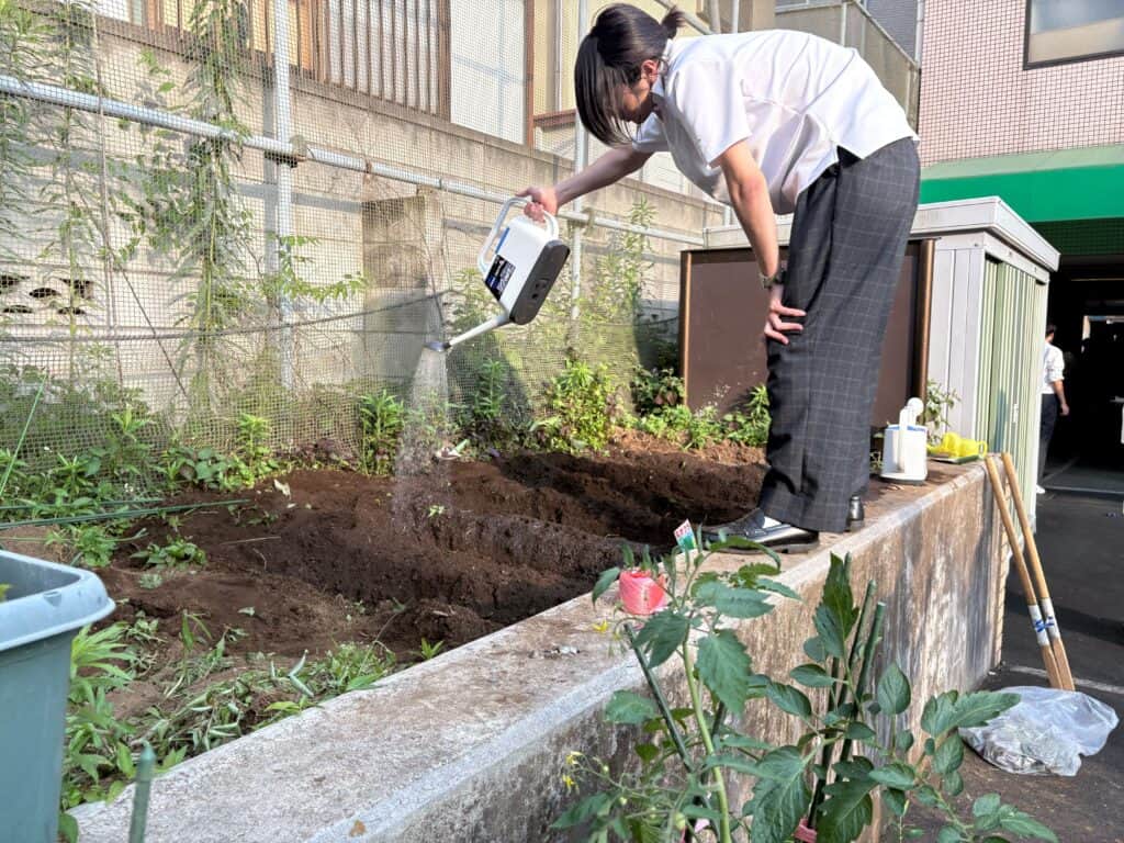 最後に水をたっぷりあげて種まきは終了です。水やり当番が土を乾かさない様お世話しながら発芽を待ちます。