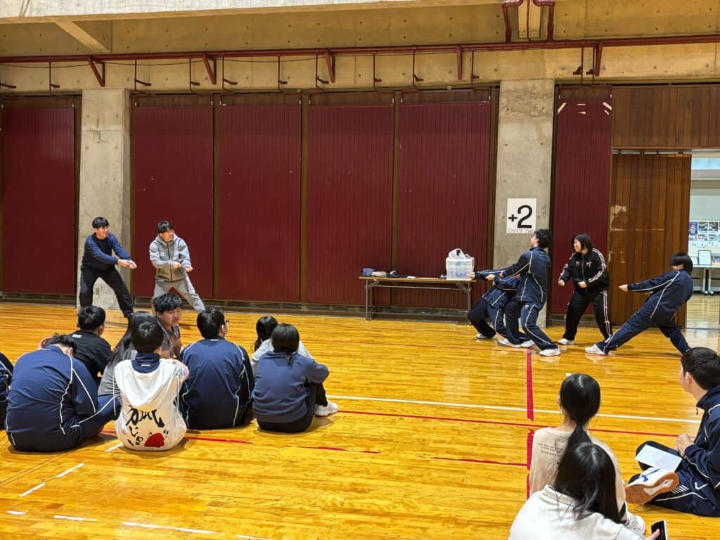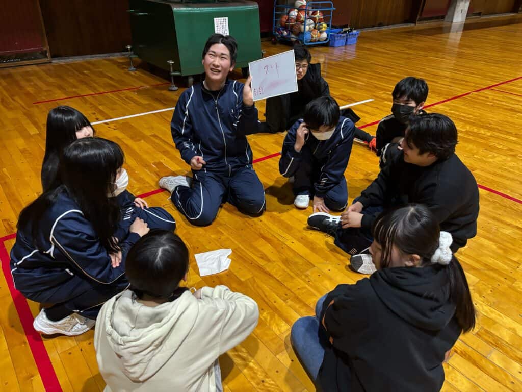 実習後は宿舎に戻り、疲れた体を休めながら体育館にてレクリエーション・ジェスチャーゲームを行いました。
