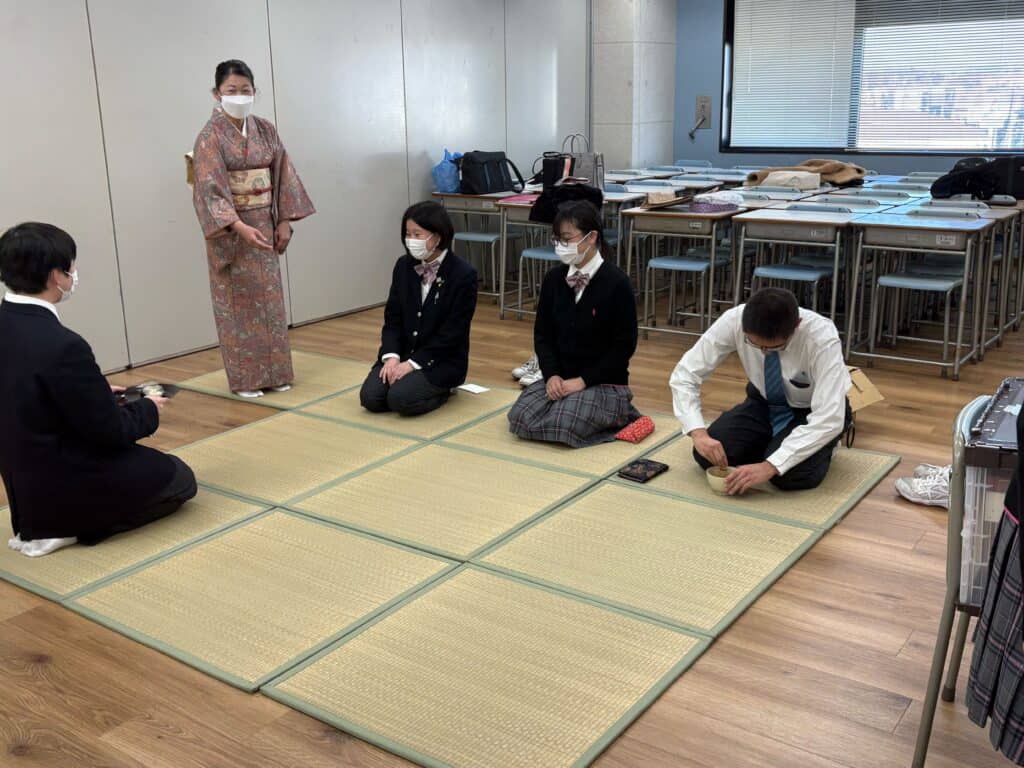 活動は月に2回、お茶の先生から畳の上がり方、茶器の扱い方、置く位置、角度に至るまで細かな指導を受けます。