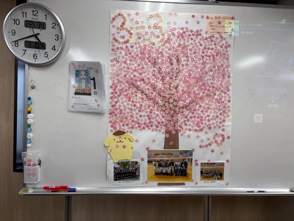 卒業まで、花満開プロジェクトも最終日となり全生徒が花を貼りました。そして、最後のホームルームを行い、各クラスらしさのある暖かい時間となりました。
