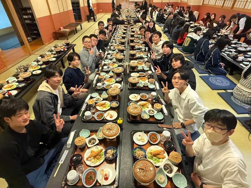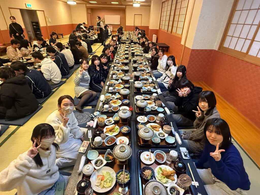 午後はバスで小樽方面へ移動し、朝里川温泉の旅館に到着しました。旅館では、みんなで食事を楽しむ姿が見られました。また、温泉にゆっくりと浸かり、ここまでの疲れを癒しながら、心身ともにリラックスすることができたようです。