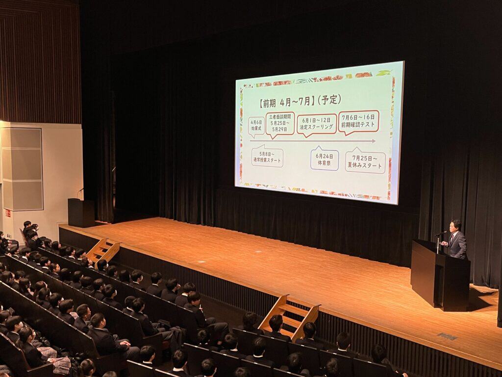 また、始業式では新任職員の発表や離任された先生方の発表に加えて、新クラスの発表や学年団の発表など生徒たちは一喜一憂しながら過ごしていました。