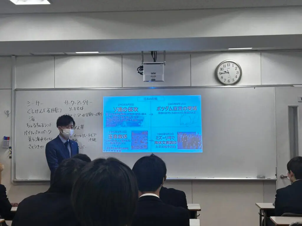 修学旅行に向けて、事前学習を行いました。3年生担任の教科の特性を活かし、歴史・自然・観光について授業を行いました。