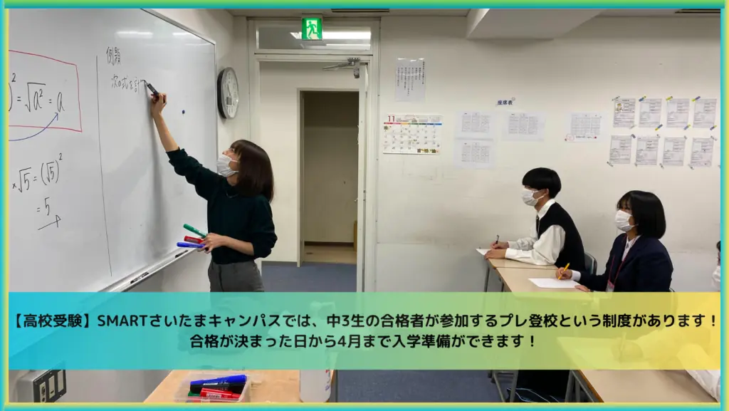 【高校受験】SMARTさいたまキャンパスでは、中3生の合格者が参加するプレ登校という制度があります!合格が決まった日から4月まで入学準備ができます!