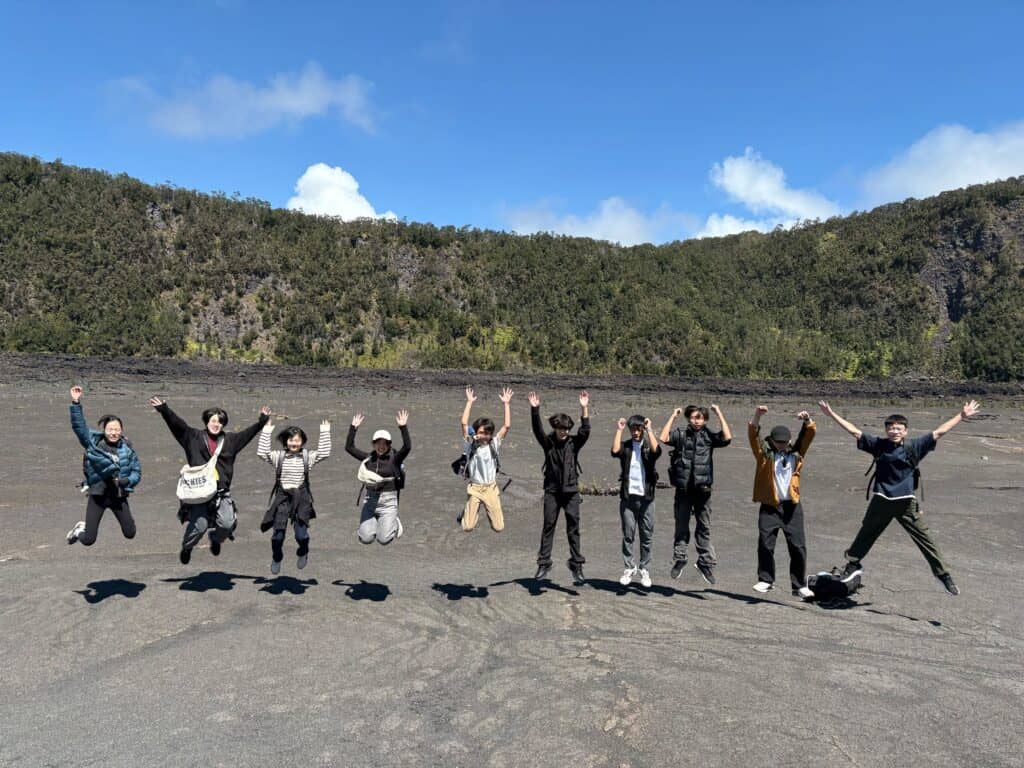 そして、前半のハイライトは、Hilo側で、キラウェア火山の噴火を観察することができたことです!!噴火口のルックポイントは宿泊しているキラウェアミリタリーキャンプから徒歩5分とほどの場所で、活発な噴火を眺めることができました!地元の人も『ここまでの噴火はなかなか見えない』とのコメントがあるほど見事で、生徒たちは日本では見られない景色に感動した様子でした。