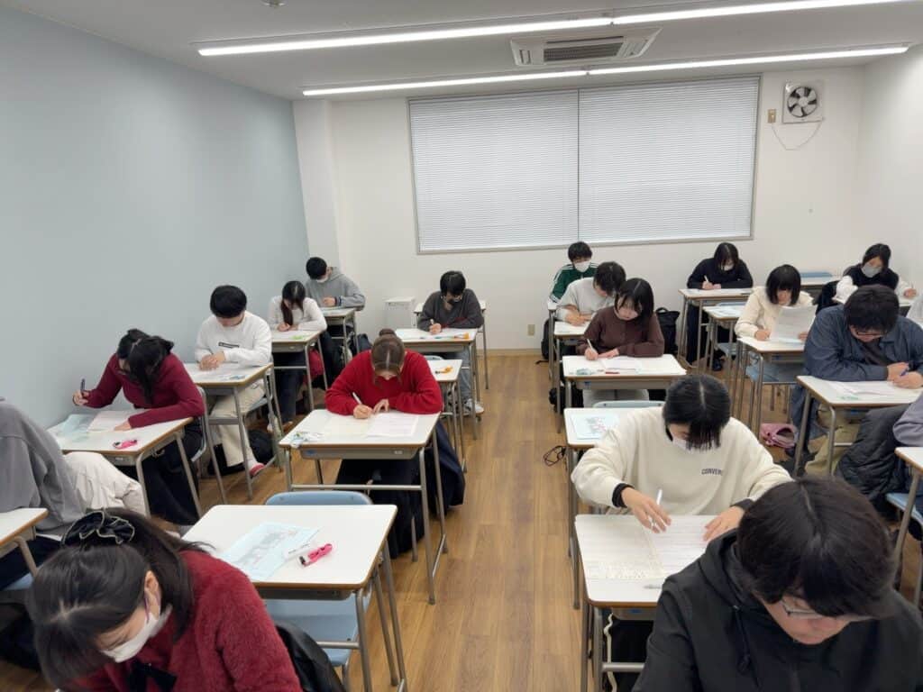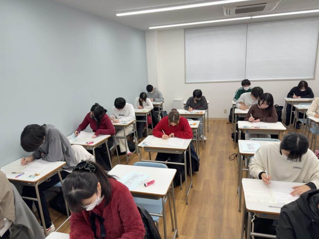 生徒たちは、試験が始まる時間まで真剣な表情で
