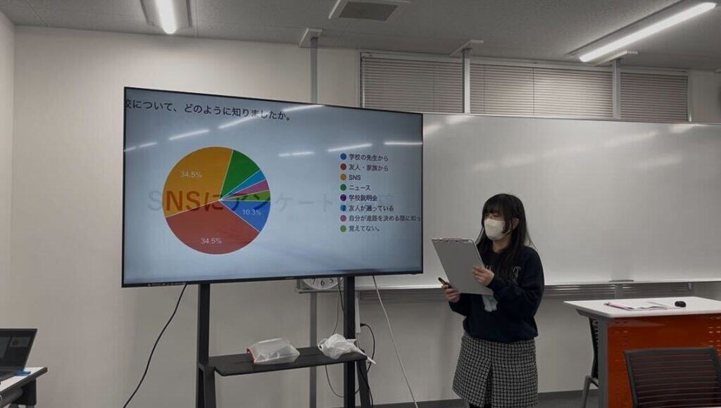 立ち位置の確認、ポインターの使い方、聞き手に伝わりやすい話し方など、細部にわたって練習を重ねています。最後の最後まで真剣に取り組む姿勢からは、発表者一人ひとりの熱意が伝わってきました。