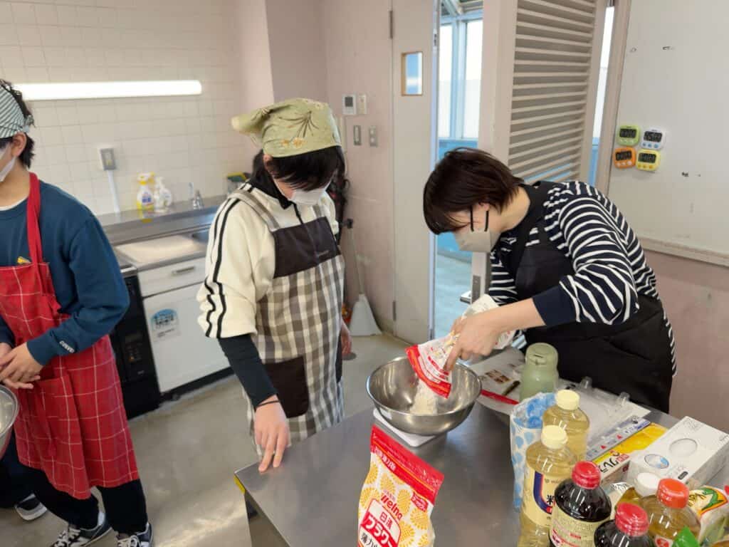 調理室は松井公民館2階。各々が時間に集まると言った感じでした。その目の前にスーパーがあり、そこで買い物をしたんですね