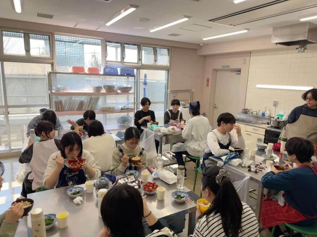 時間に調理室に集まり、班になります。班はいい感じに好きにわかれて、仲間はずれ等なく楽しく組むことができました。班になる際、気まずくなったりすることがあるため、森田はそれを懸念したのですが、杞憂でした🫡