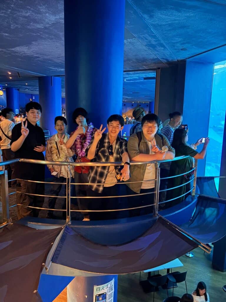 水族館では、大迫力のジンベイザメの泳ぐ姿に歓声が上がり、イルカショーでは笑顔あふれる時間を過ごすなど、生徒たちは思い思いに楽しんでいました。