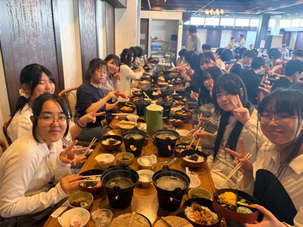 修学旅行二日目は、朝からしっかりと起床し、生徒たちは元気に朝食をとるところからスタートしました。