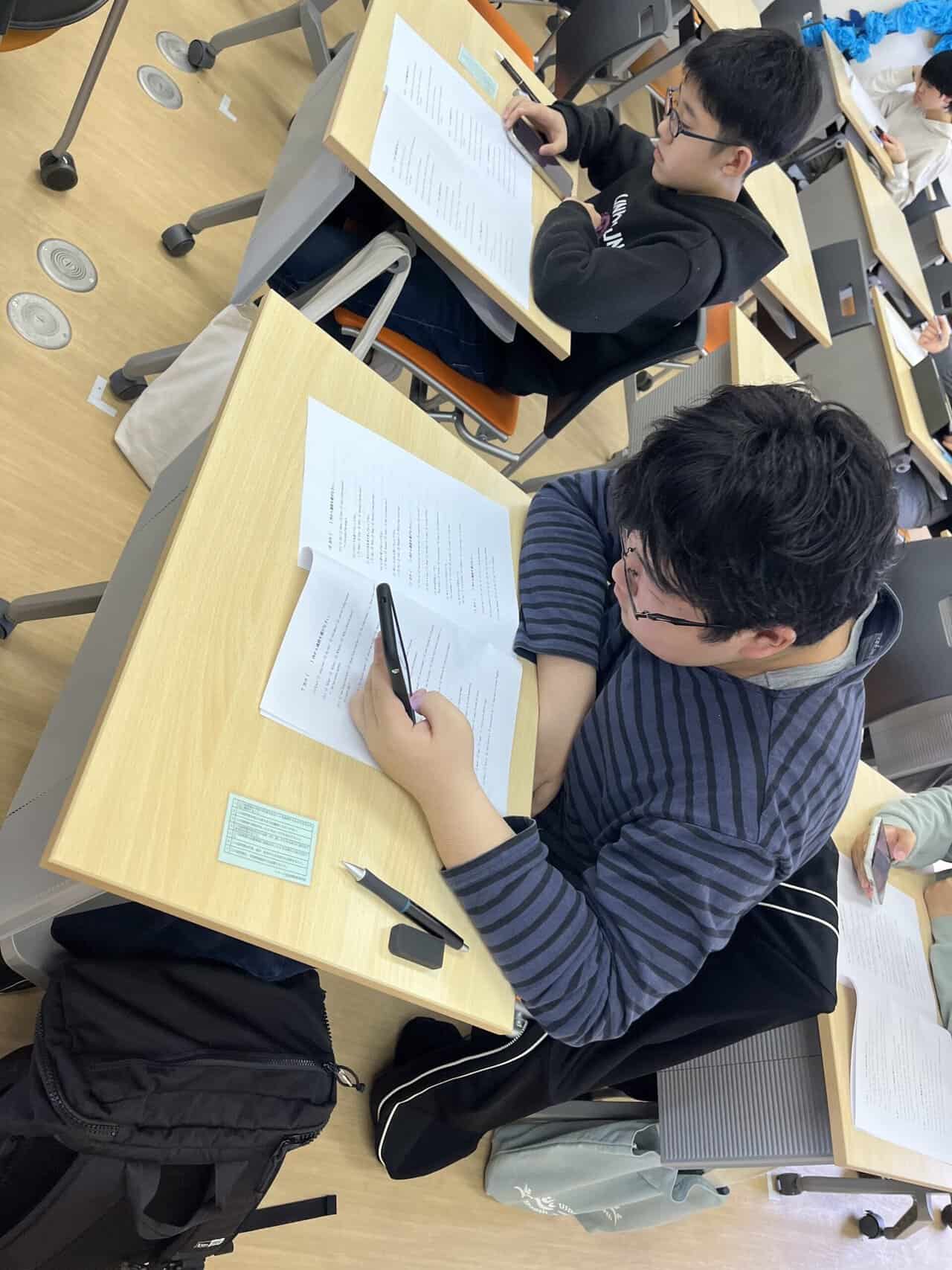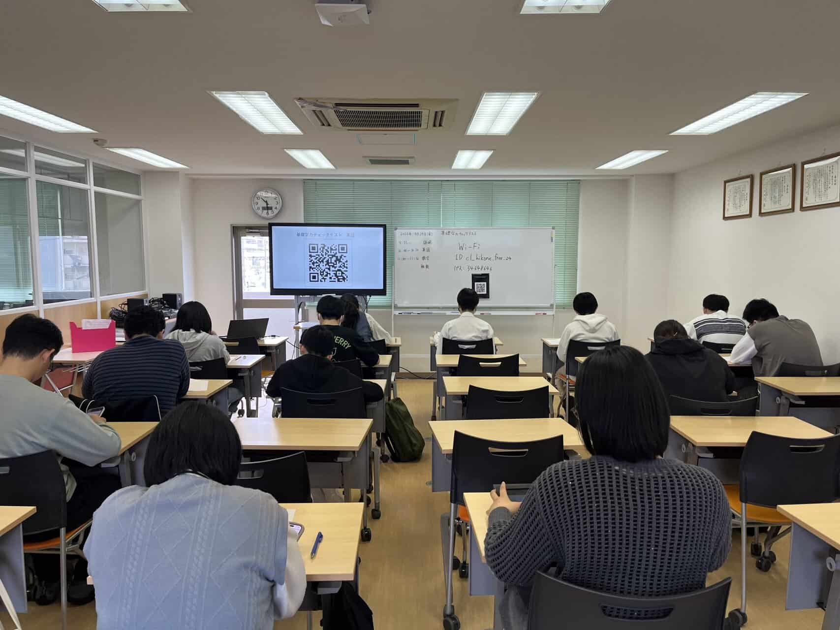 4月24日(木)に新入生を対象をした基礎学力チェックテストを実施しました。インターネットのFormsを利用したテストのため生徒のみなさんはスマートフォンやタブレットでテストを受けています。