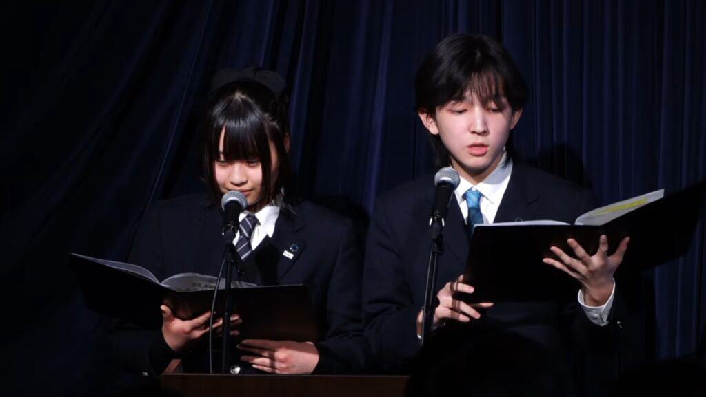 彦根キャンパスでは、生徒たちが校内に集まり、東京会場の発表の様子を視聴しました。全国の代表生徒による堂々としたプレゼンテーションや、多様なテーマに基づく探究発表に触れることで、自身の学びを振り返るとともに、次年度への新たな目標を見つめる機会となりました。