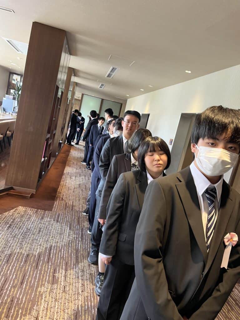 入学許可書授与では生徒一人一人が壇上にあがり、入学許可書受け取り、モニターにて「私の大使」が発表されました。