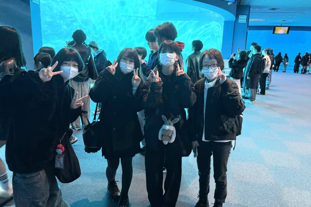 本日、コース行事で 校外遠足が実施され、国際総合コースの1.2年生が名古屋港水族館へ行きました。今回のテーマは、「他学年の交流」で、実行委員が考えたミッションなどをクリアしながら、それぞれで楽しい時間を過ごしました。