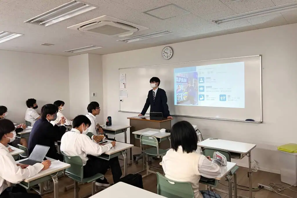 大学授業の一環で実現した今回の特別講義ですが、年齢が近いからこその生徒が楽しめる、そして、分かりやすい表現で法律についての説明をしてくれました。