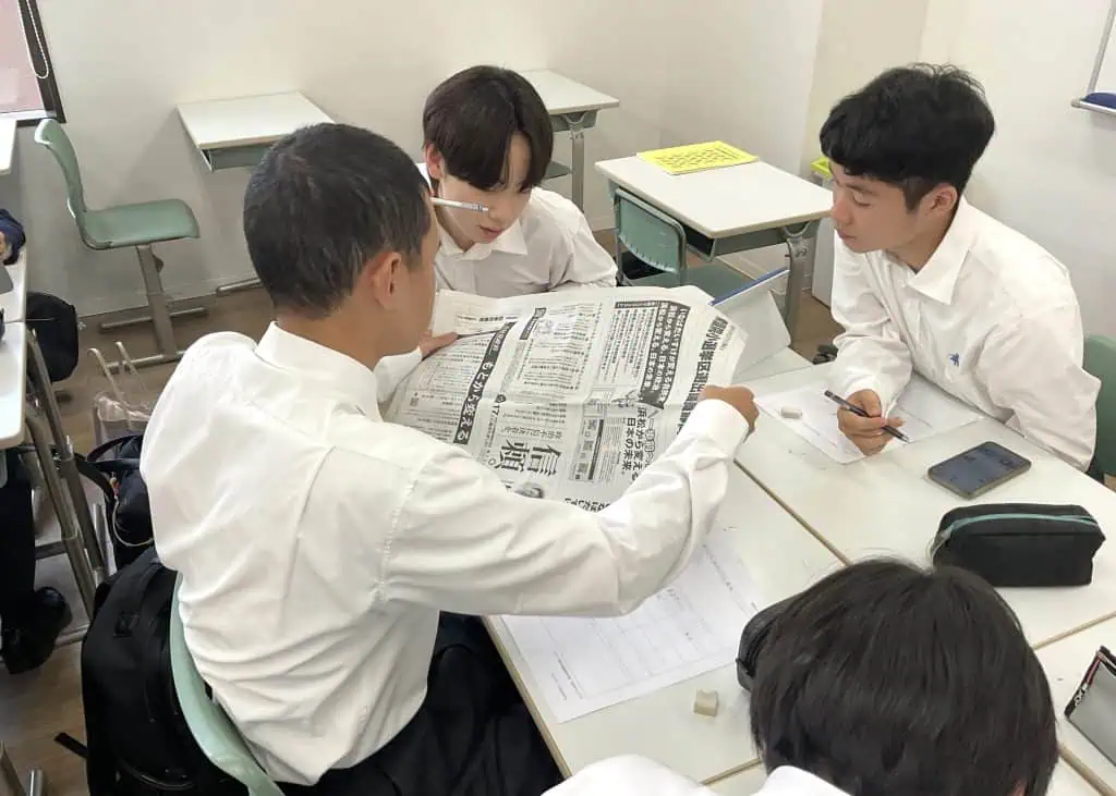 自宅から新聞を持ってきて授業に取り組む生徒もおり、生徒の関心度が高まっていることを感じさせられました。