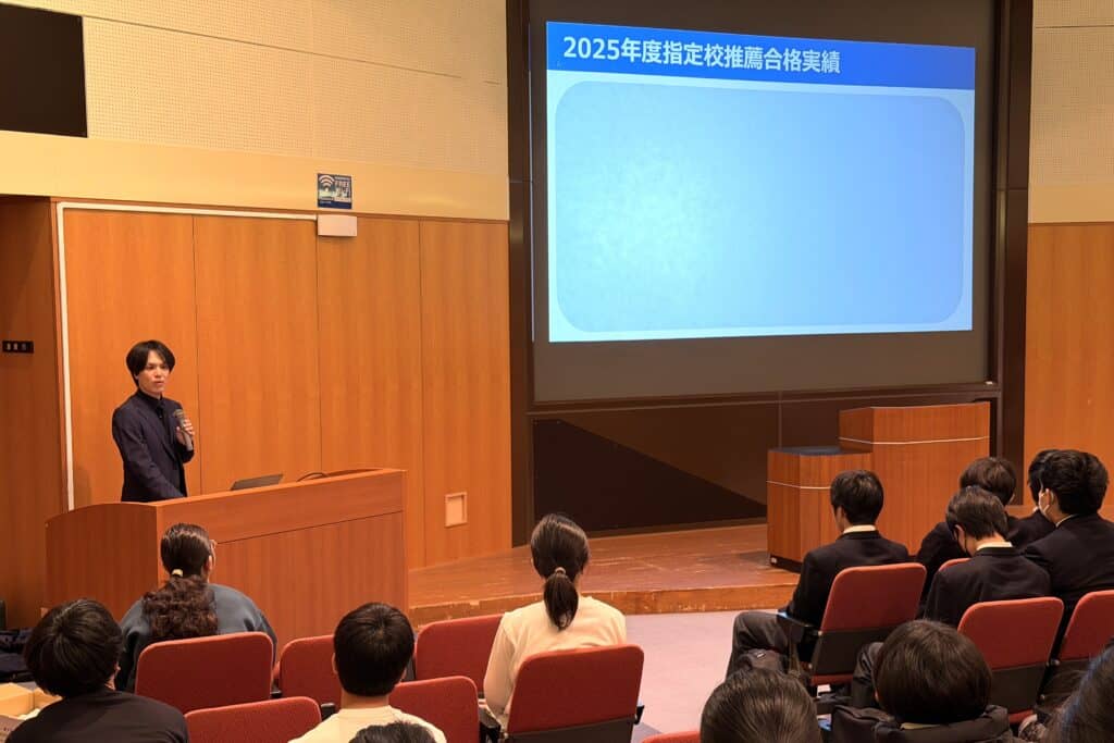 本日、1.2年生を対象とした進路ガイダンスが実施されました。進路ガイダンスの中では、3年生から進路報告会も実施され、自身の経験談を先輩として後輩に対して伝えてくれていました。