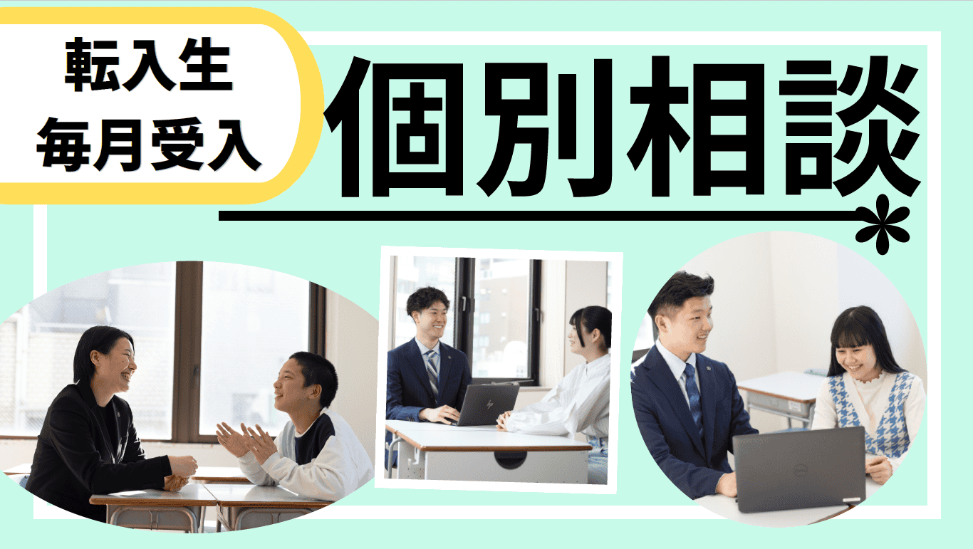 学校説明会の前に本校についてお知りになりたい場合は、個別相談会にご参加いただけます。高校生の転・編入学をご検討の方も個別相談会にご参加いただけますので、下記ボタンよりお申し込みください。