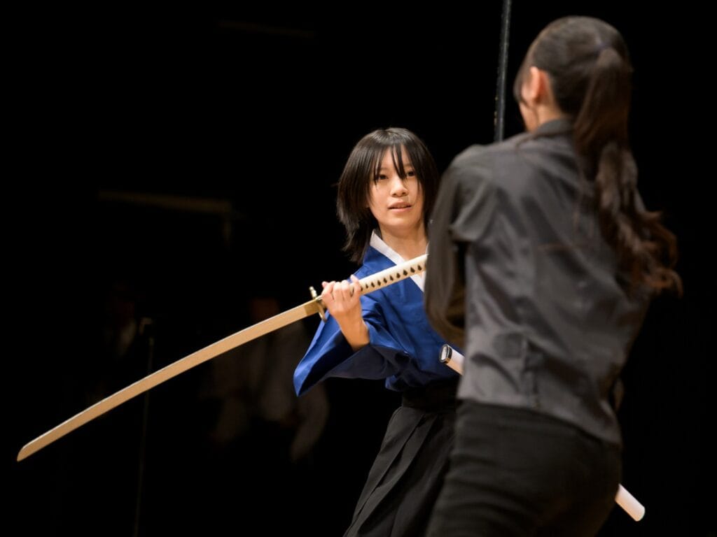 アクション部の刀を使った殺陣を披露!