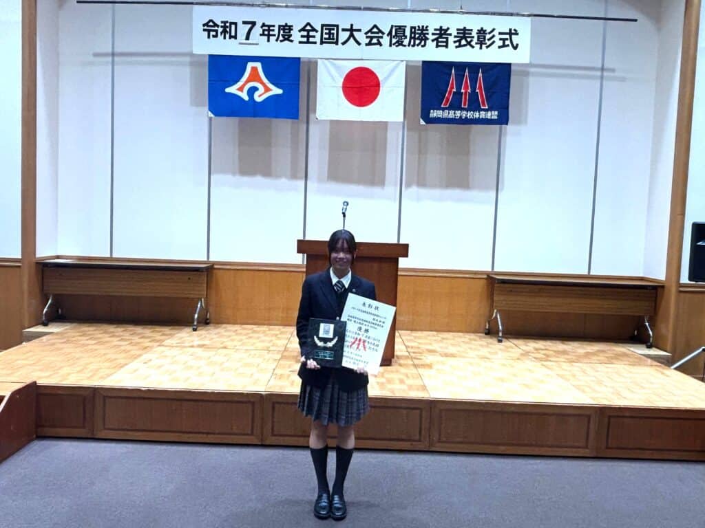 1月末、高体連陸上競技の表彰式が行われ、総合進学コース3年の鈴木さんが今年度の優れた成績を称えられました!