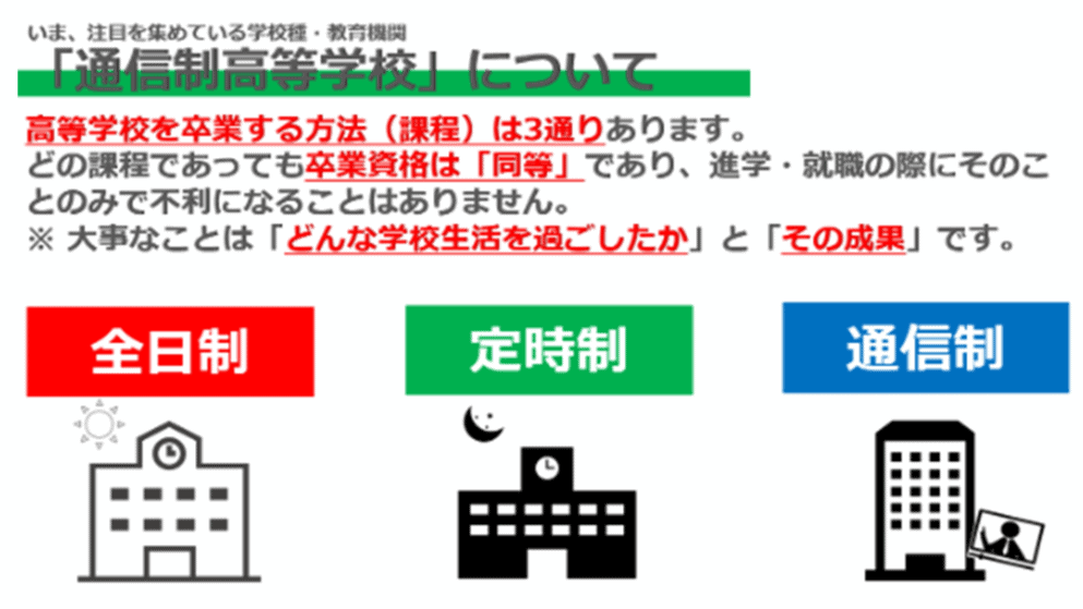 「通信制」と聞いて不安に感じる方もいるかもしれませんが、取得できる高校卒業資格は全日制と全く同じ。進学・就職でも差はありません。
