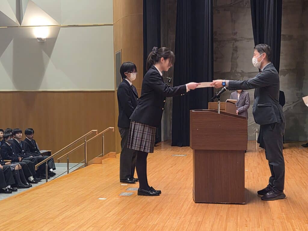 また、資格検定に合格した生徒たちの表彰も行われ、多くの生徒が壇上にあがりました。