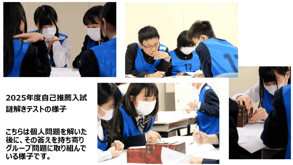 - 試験内容 … 国数英より1科目の学科試験 + 謎解きテスト(個人問題 & グループ問題)