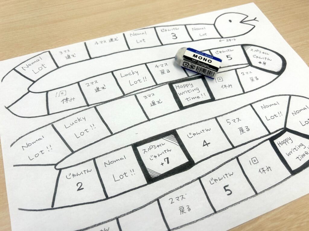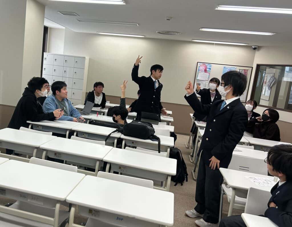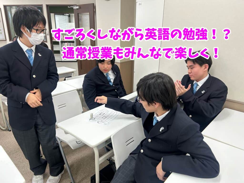 CLARK NEXT Akihabaraは、特色あふれるコース授業だけではなく一般科目の通常授業にも力を入れています。 今回ご紹介するのは1年生「コミュニケーション英語Ⅰ」の授業! 今日の授業では、直近で習った受動態の単元の復習を目的に、ゲーム方式で問題を解いていく授業を行いました。 チーム対抗戦で協力をし合いながら、問題を解くことですごろくのコマを進めます。 勝敗がかかっているので、楽しみながらも真剣に問題に取り組む姿が見られました。 特殊マスに止まると一発逆転のチャンスも!? 実力だけではなく、運の強さも必要となるところが面白いポイントです。 ゲームは完全オリジナルで、まさにCLARK NEXT Akihabaraならではの授業です。 楽しみながら仲間と協同学習をし、着実に力を付けていきましょう!