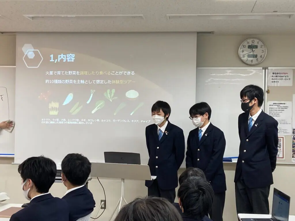 生徒たちは、それぞれの個性豊かな企画を発表するために、それぞれの長所を生かしてスライドを作ったり、ポスターや発表原稿を書いて企画発表に臨みました。発表する側だけでなく、発表を聞く生徒も真剣そのもの。次回発表会があったらどんな部分が参考になるかを常に考えて発表を聞いていました。