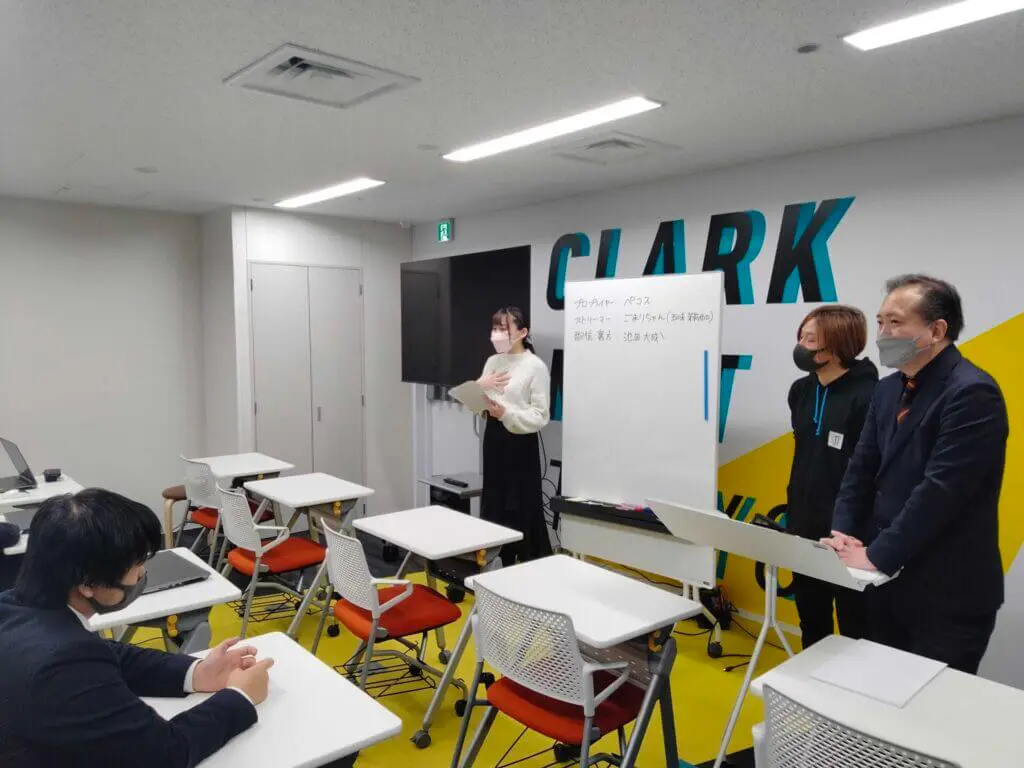 CLARK NEXT Tokyoのeスポーツコースでは、ゲーム実践だけでなく、配信の授業も行っています。 この日はプロプレイヤーのペコス先生、ストリーマーのごまりちゃんこと五味茉莉伽先生、配信担当の池田大成先生が来てくださりました。 1時間目は自己紹介ということで、好きなゲームや今後の進路などについて交流を深めました。2時間目は配信活動の実際について深い話をしていただきました。