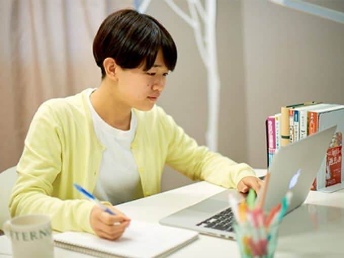 自宅、図書館、カフェなど、学ぶ場所は自由。もちろん、キャンパスに設けられた自習スペースも自由に使うことができます。学習でわからないところは、常駐しているクラークの教員や大学生チューターに質問してください。