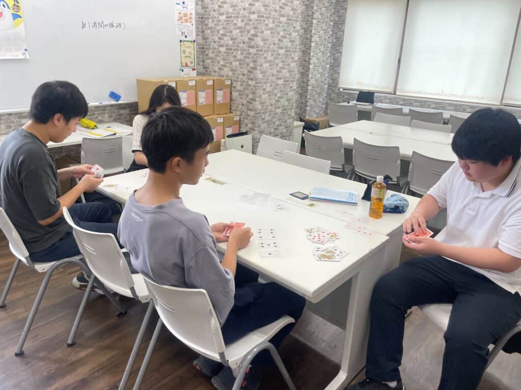 全日型コースの登校時間に合わせて週5日登校し、朝学習を行った後にはカードゲームで交流したり、その日の学習予定を立てたりします。その後は自習を進めたり、各コースの体験に参加したりと、少しずつ全日型の生活リズムに慣れていけるようにしています。