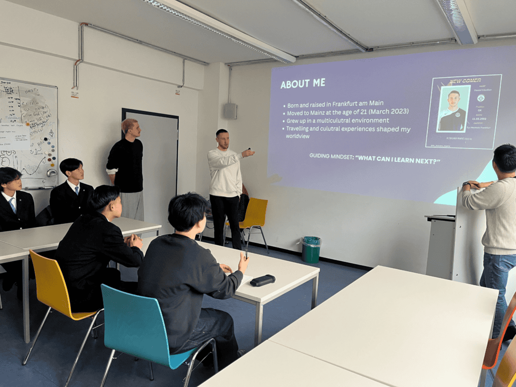 午前中はマインツ大学を訪問。現役大学生のダニエルさんとトーマスさんから、異文化理解と挑戦するマインドセットについて講義を受けました。