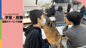 また、文化祭で実施する企画についての話し合いも行われ、生徒たちは、「スマートスタディコースの特徴って何だろう?」「みんなに楽しんでもらえる企画ってどんなものだろう?」とみんなで議論しあいながら考えていました。