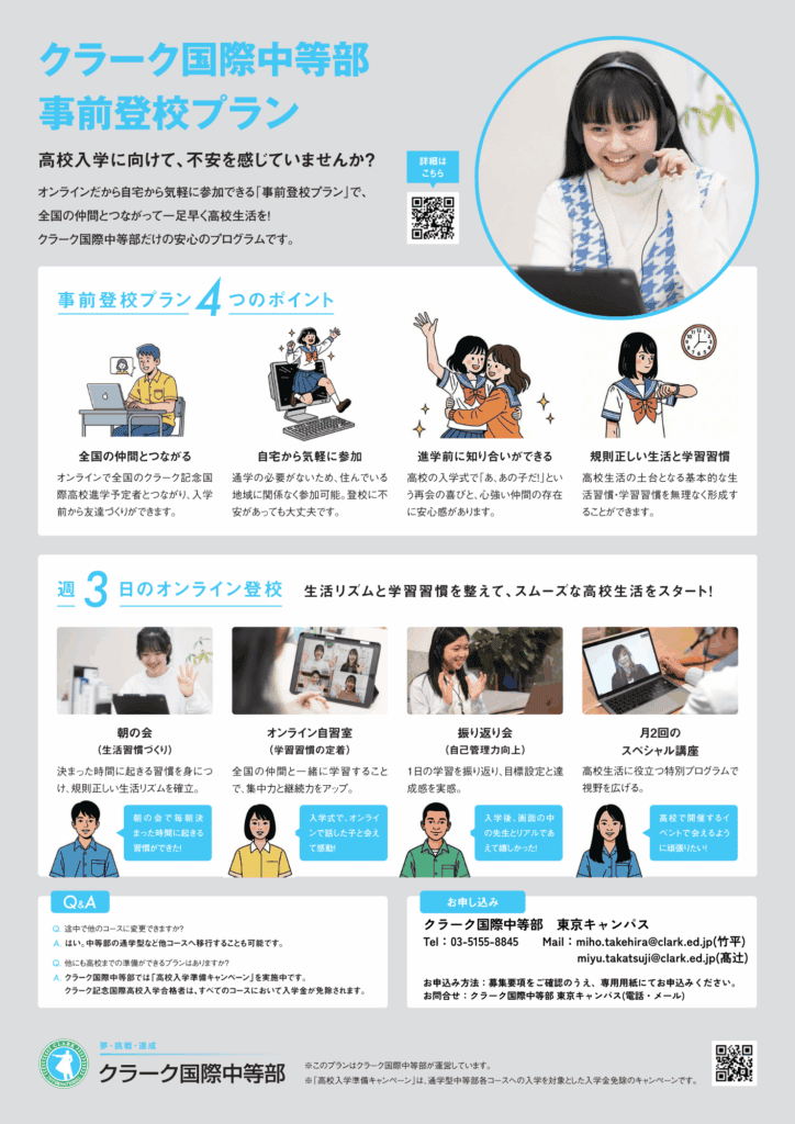 <クラーク国際中等部『事前登校プラン』無料入学キャンペーン>