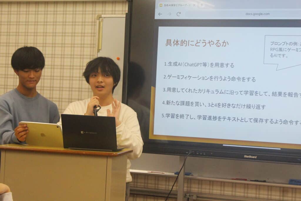 今回の発表会では、PBL授業や部活動での活動内容と、その中での学びについて生徒たちが発表をしました。