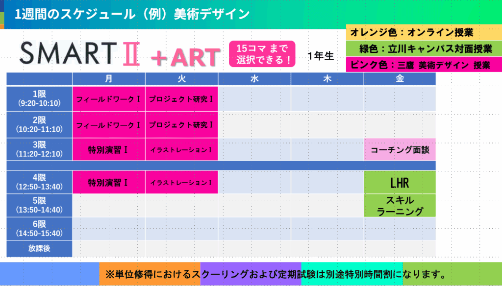 現在、立川キャンパスで、美術デザインコースに通っている生徒の時間割をお見せします!
